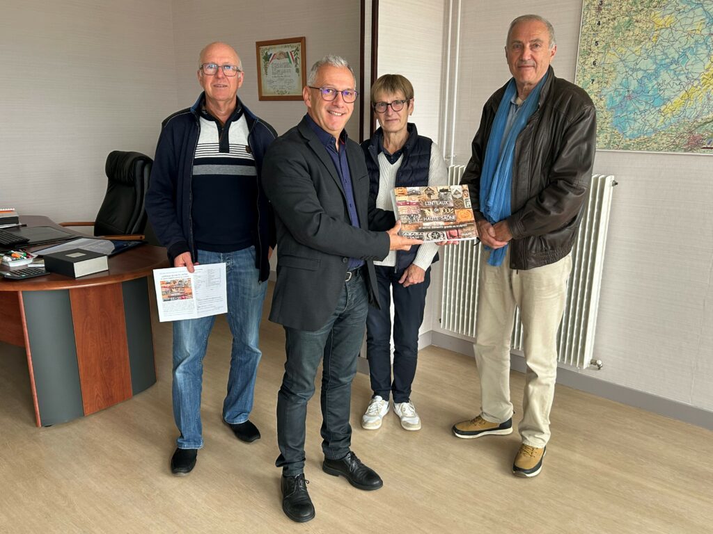 Vendredi 10 octobre 2025, Laurent Seguin, Président du Département de la Haute-Saône, a reçu M. Dominique Chevreux, Président de la SALSA, et M. et Mme Ponsot représentant la SHAARL de Lure, pour une présentation de l’ouvrage sur les « Linteaux de Haute-Saône ». Ce livre, publié conjointement par les deux associations, était attendu depuis de nombreuses années, et sera une référence pour le département de la Haute-Saône.