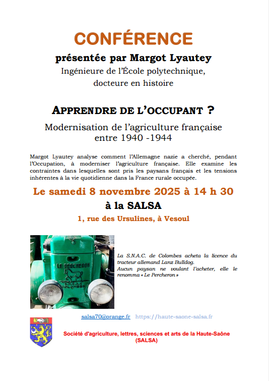 La Société d’agriculture, lettres, sciences et arts de la Haute-Saône (Salsa) vous propose une conférence présentée par Margot Lyautey, ingénieure de l’Ecole polytechnique, docteure en histoire.