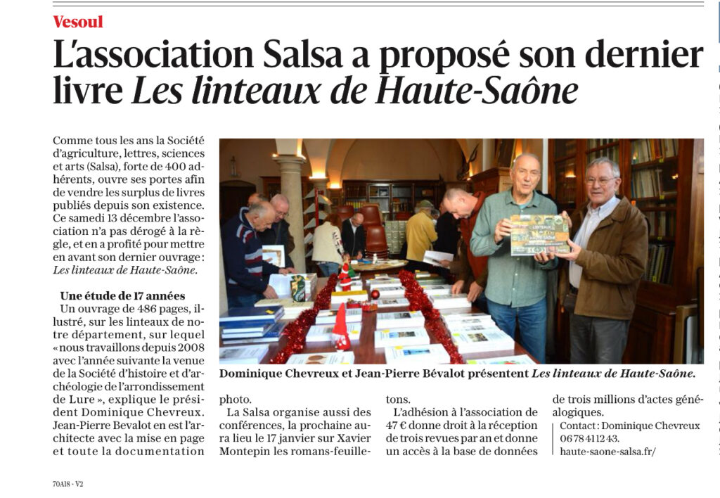 Article Est Républicain : La vente de livres du samedi 13 décembre 2025 et le Livre des Linteaux